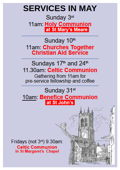 - Holy Communion Service at St Mary’s Meare on Sunday 3rd May